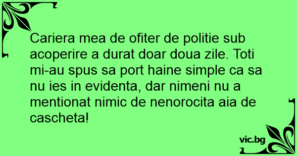 Cariera mea de ofiter de politie sub acoperire a durat doar doua zile. Toti mi-au spus sa port haine simple ca sa nu ies in evidenta, dar nimeni nu a mentionat nimic de nenorocita aia de cascheta!