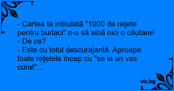 - Cartea ta intitulată "1000 de reţete pentru burlaci" n-o să aibă nici o căutare!