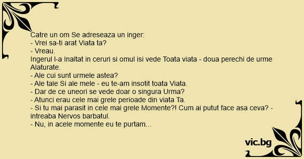 Ingerul l-a Inaltat in ceruri si omul isi vede Toata viata - doua perechi de urme Alaturate.