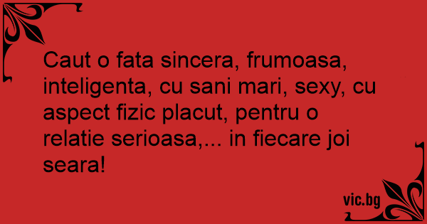 Caut o fata sincera, frumoasa, inteligenta, cu sani mari, sеxy, cu aspect fizic placut, pentru o relatie serioasa,... in fiecare joi seara!