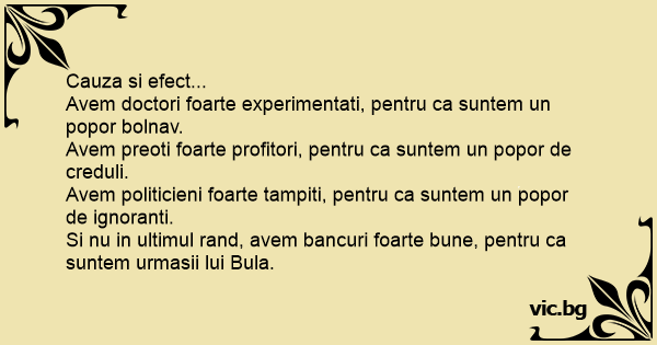 Si nu in ultimul rand, avem bancuri foarte bune, pentru ca suntem urmasii lui Bula.
