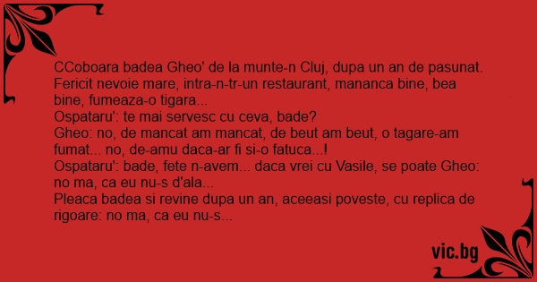 Ospataru': bade, fete n-avem... daca vrei cu Vasile, se poate Gheo: no ma, ca eu nu-s d'ala...