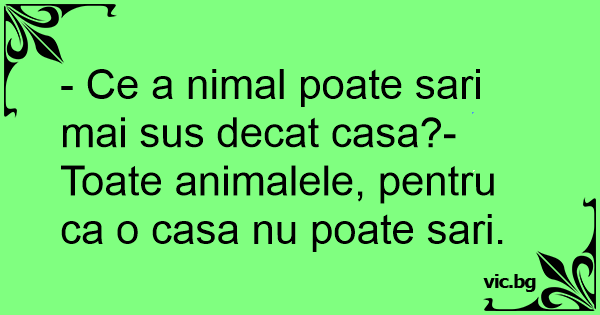 - Ce a nimal poate sari mai sus decat casa?- Toate animalele, pentru ca o casa nu poate sari.