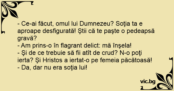 - Ce-ai făcut, omul lui Dumnezeu? Soţia ta e aproape desfigurată! Ştii că te paşte o pedeapsă gravă?
