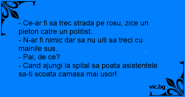 - Ce-ar fi sa trec strada pe rosu, zice un pieton catre un politist.