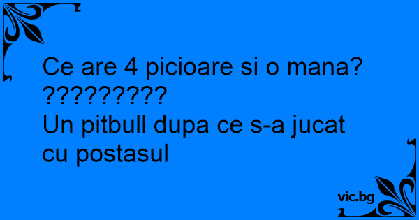 Ce are 4 picioare si o mana in gura.? un pit-bull fericit