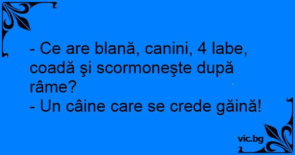 - Ce are blană, canini, 4 labe, coadă şi scormoneşte după râme?