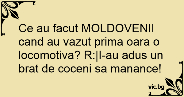 Ce au facut MOLDOVENII cand au vazut prima oara o locomotiva? R:|I-au adus un brat de coceni sa manance!