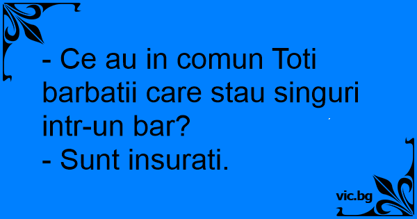 - Ce au in comun Toti barbatii care stau singuri intr-un bar?