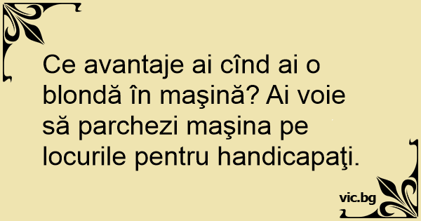 Ce avantaje ai cînd ai o blondă în maşină? Ai voie să parchezi maşina pe locurile pentru handicapaţi.