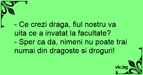 - Ce crezi draga, fiul nostru va uita ce a invatat la facultate?