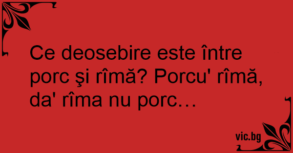 Ce deosebire este între porc şi rîmă? Porcu' rîmă, da' rîma nu porc…