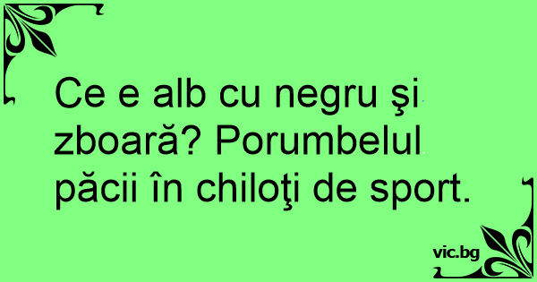 Ce e alb cu negru şi zboară? Porumbelul păcii în chiloţi de sport.