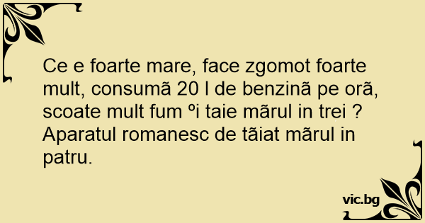 Ce e foarte mare, face zgomot foarte mult, consumã 20 l de benzinã pe orã, scoate mult fum ºi taie mãrul in trei ?