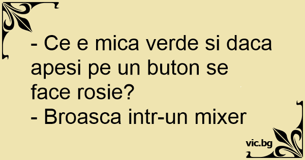 Was ist grün und wird auf Knopfdruck rot? – Ein Frosch im Mixer.
