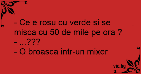 - Ce e rosu cu verde si se misca cu 50 de mile pe ora ?