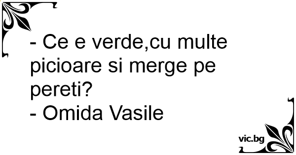 - Ce e verde,cu multe picioare si merge pe pereti?