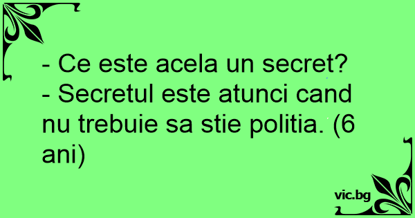 - Secretul este atunci cand nu trebuie sa stie politia. (6 ani)