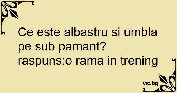 Ce este albastru si umbla pe sub pamant?raspuns:o rama in trening