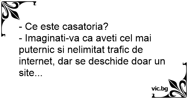 - Ce înseamnă căsătoria? - Să ai trafic nelimitat la internet, dar să se deschidă doar un singur site.