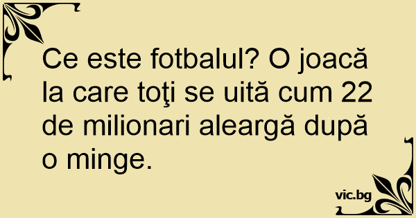 Ce este fotbalul? O joacă la care toţi se uită сuм 22 de milionari aleargă după o мingе.