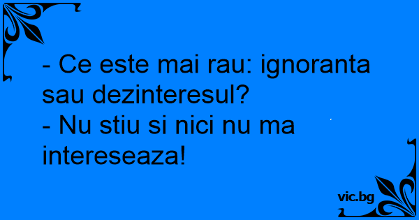 - Ce este mai rau: ignoranta sau dezinteresul?