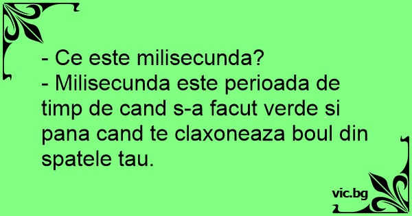 - Milisecunda este perioada de timp de cand s-a facut verde si pana cand te claxoneaza boul din spatele tau.