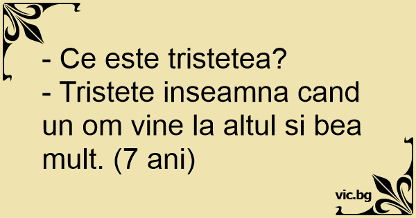 - Tristete inseamna cand un om vine la altul si bea mult. (7 ani)