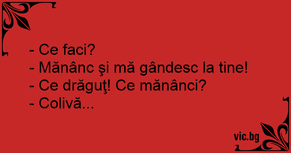 - Ce faci? - Mănânc şi mă...