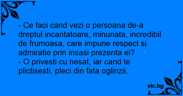 - Ce faci cand vezi o persoana de-a dreptul incantatoare, minunata, incredibil de frumoasa, care impune respect si admiratie prin insasi prezenta ei?