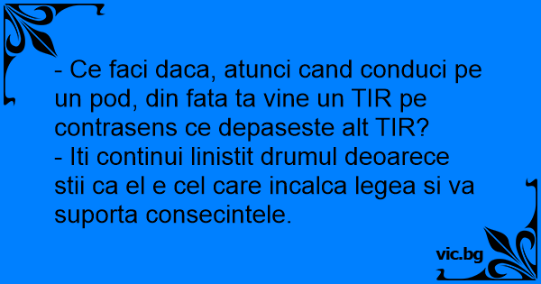 - Ce faci daca, atunci cand conduci pe un pod, din fata ta vine un TIR pe contrasens ce depaseste alt TIR?