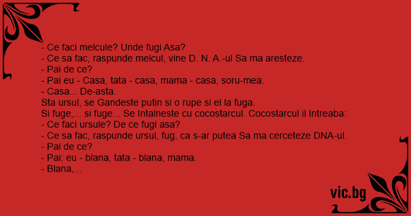 - Ce sa fac, raspunde melcul, vine D. N. A.-ul Sa ma aresteze.