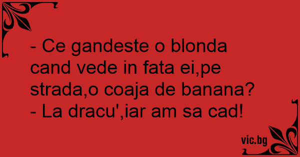 - Ce gandeste o blonda cand vede in fata ei,pe strada,o coaja de banana?