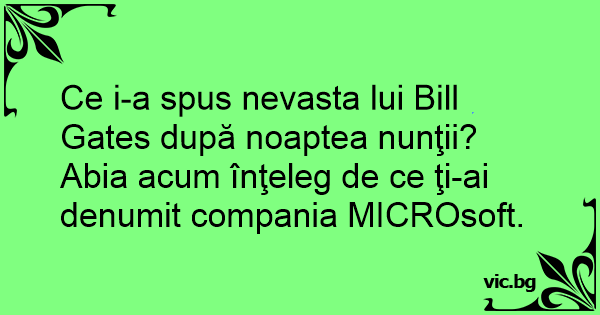 Ce i-a spus nevasta lui Bill Gates după noaptea nunţii? Abia acum înţeleg de ce ţi-ai denumit compania MICROsoft.