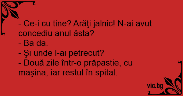 - Ce-i cu tine? Arăţi jalnic! N-ai avut concediu anul ăsta?