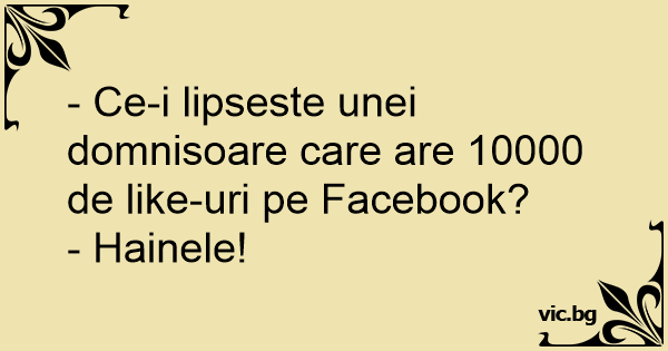 - Ce-i lipseste unei domnisoare care are 10000 de like-uri pe Facebook?