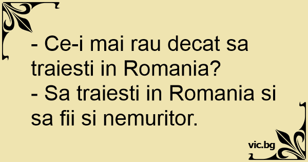 - Sa traiesti in Romania si sa fii si nemuritor.