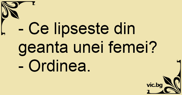 - Ce lipseste din geanta unei femei?