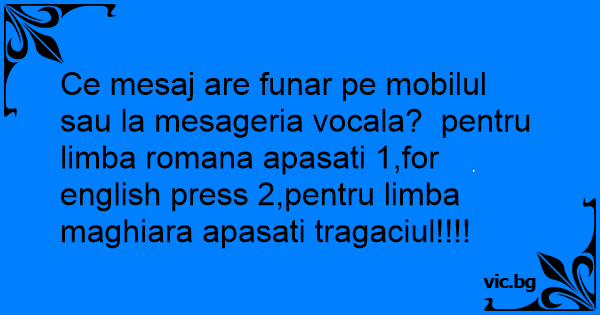 Ce mesaj are funar pe mobilul sau la mesageria vocala? pentru limba romana apasati 1,for english press 2,pentru limba maghiara apasati tragaciul!!!!