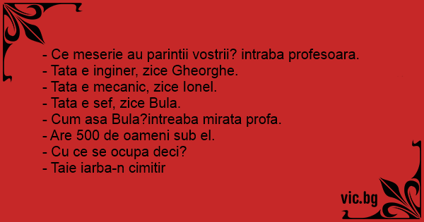 - Ce meserie au parintii vostrii? intraba profesoara.