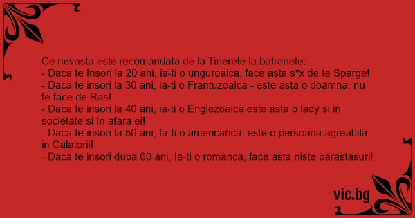 - Daca te insori dupa 60 ani, Ia-ti o romanca, face asta niste parastasuri!