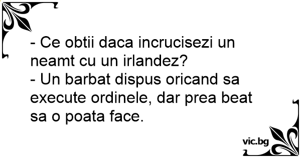 - Ce obtii daca incrucisezi un neamt cu un irlandez?