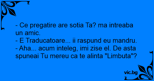 - E Traducatoare... ii raspund eu mandru.