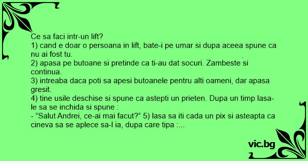 - ”Salut Andrei, ce-ai mai facut?” 5) lasa sa iti cada un pix si asteapta ca cineva sa se aplece sa-l ia, dupa care tipa :