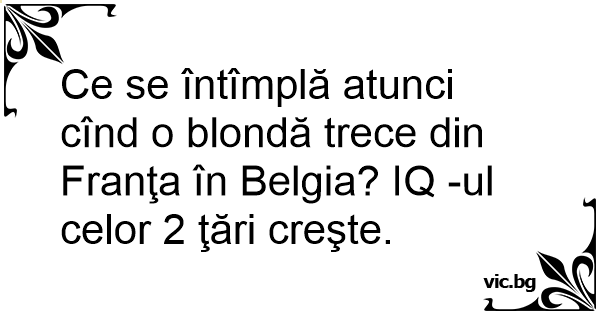 Ce se întîmplă atunci cînd o blondă trece din Franţa în Belgia? IQ -ul celor 2 ţări creşte.