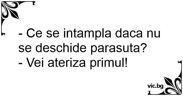 - Ce se intampla daca nu se deschide parasuta?<br />- Vei ateriza primul!