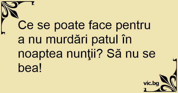 Ce se poate face pentru a nu murdări patul în noaptea nunţii? Să nu se bea!