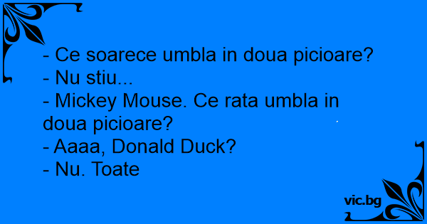 - Mickey Mouse. Ce rata umbla in doua picioare?