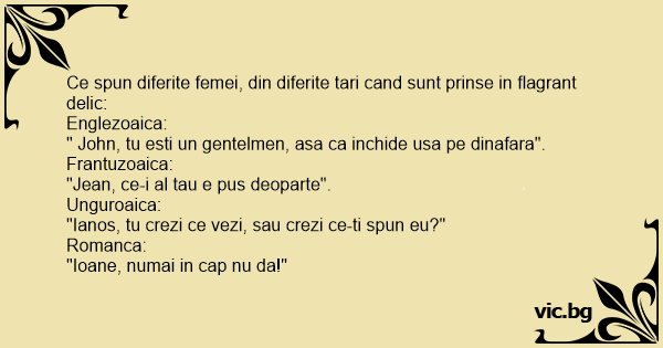 Ce spun diferite femei, din diferite tari cand sunt prinse in flagrant delic: