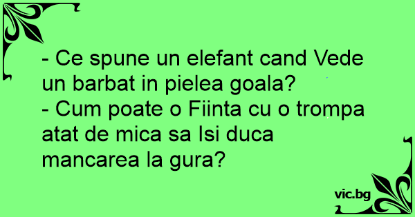 - Ce spune un elefant cand Vede un barbat in pielea goala?